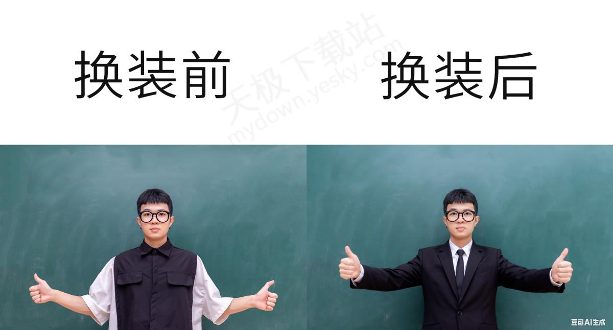 3.AI换装。替换西装、婚纱、泳装等各种服装。
