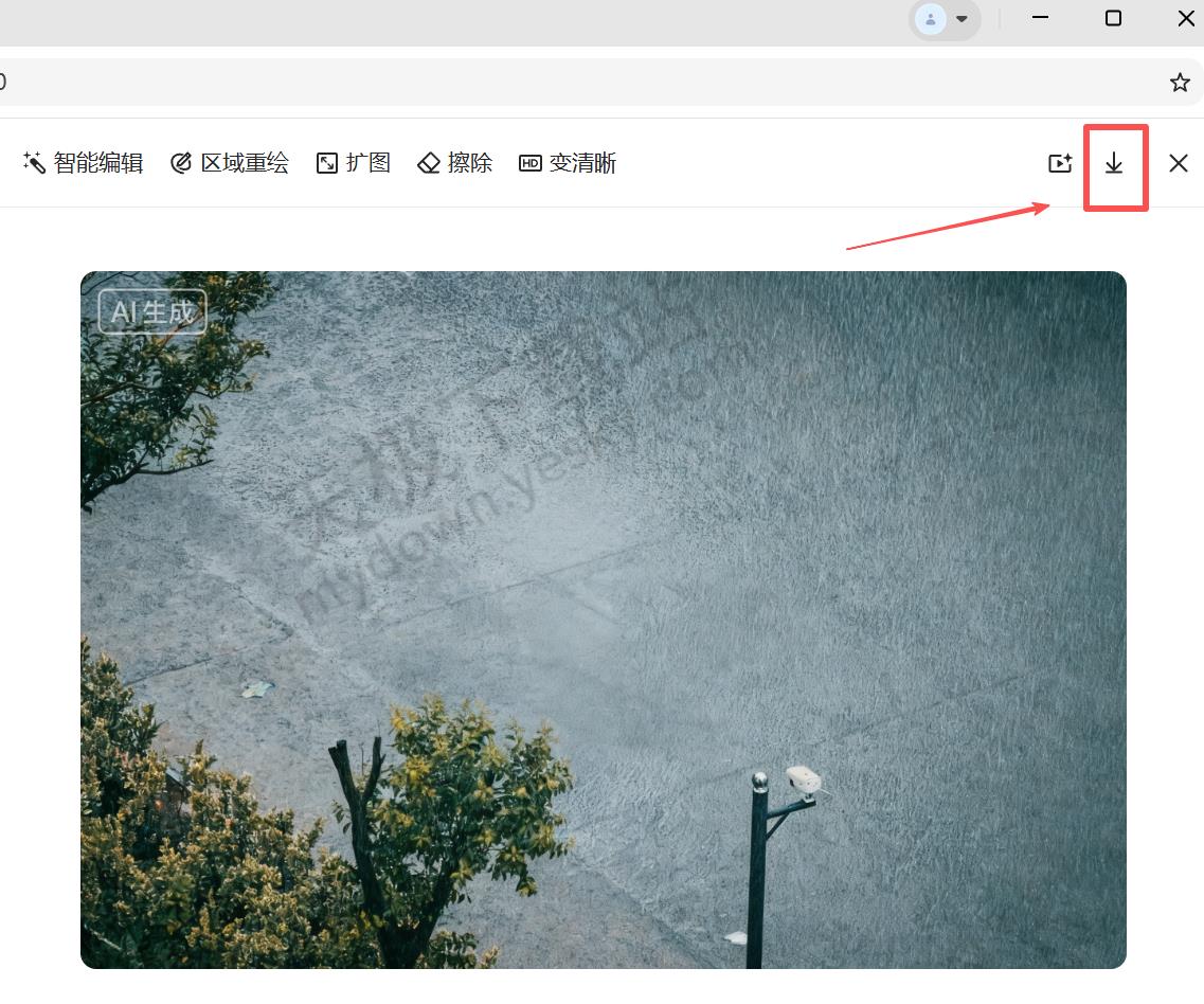 4.进入图像详情页,可以看到豆包处理的效果很完美,没有任何瑕疵,在右上角可保存该图像到本地。