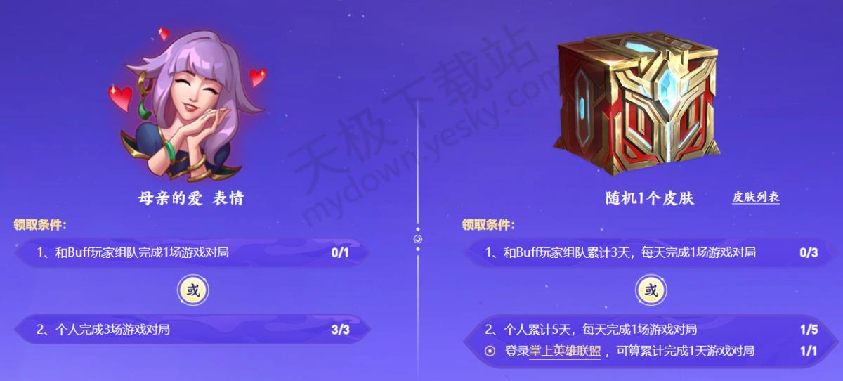 5.单人累计5天,每天完成1场对局,可领取1款未拥有的皮肤。