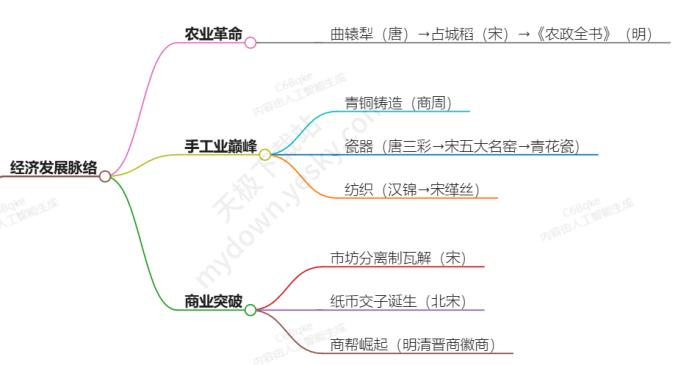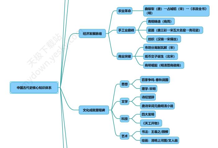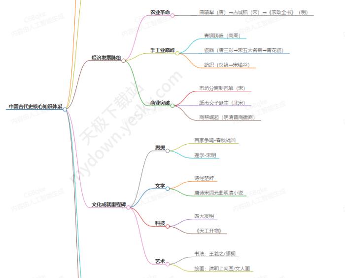 3、在搜索框输入:“帮我生成一个中国古代史的思维导图,主要分支要包括朝代更迭、各种制度、经济发展、文化成就、重大事件、关键人物等。”