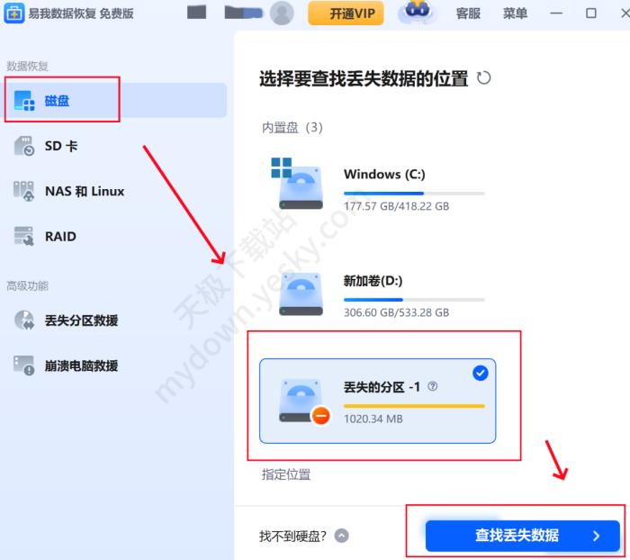 易我数据恢复可以恢复磁盘的数据,具体操作如下: