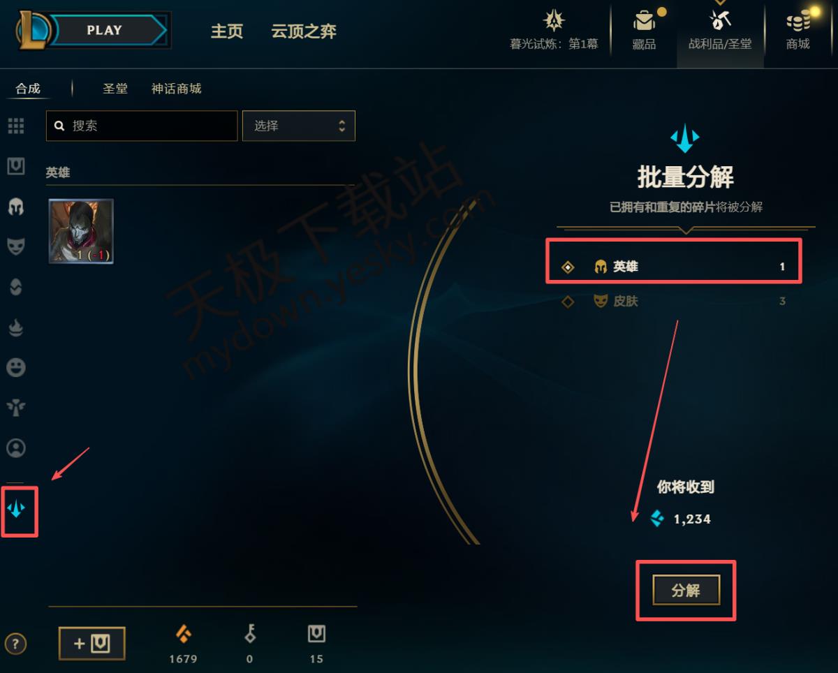 英雄联盟电脑版如何批量分解英雄碎片