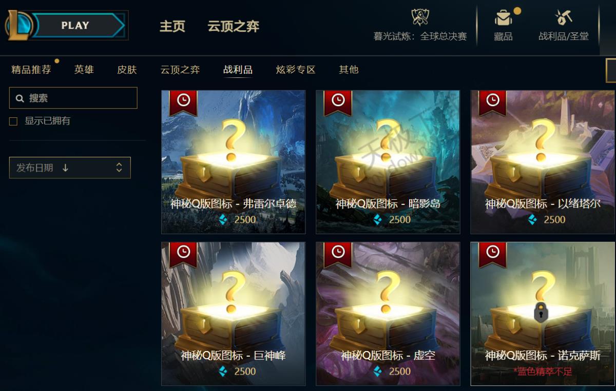 3、神秘Q版图标宝箱。每个宝箱2500蓝色精粹,开启可获取随机未拥有的可爱英雄图标。