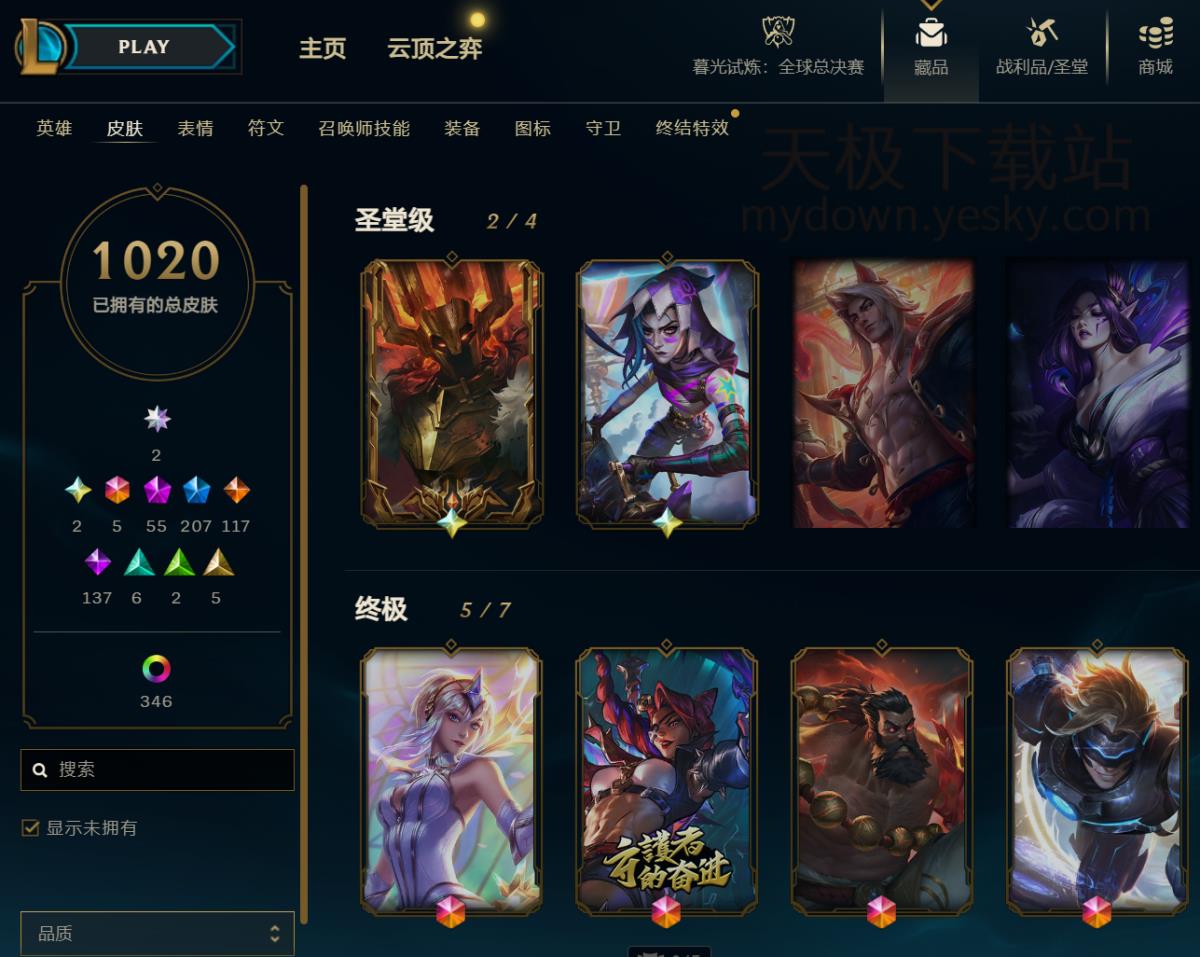 英雄联盟圣堂皮肤目前有多少个