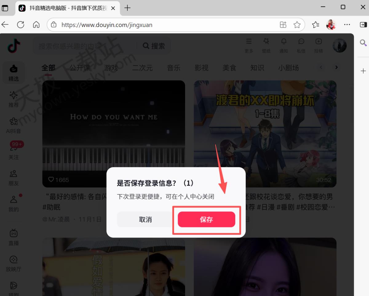 抖音 软件大小: 315.3MB 更新时间: 2025-10-10 15:54:01 所属分类: 直播 前往下载页面 抖音网页版自动登录在哪开启