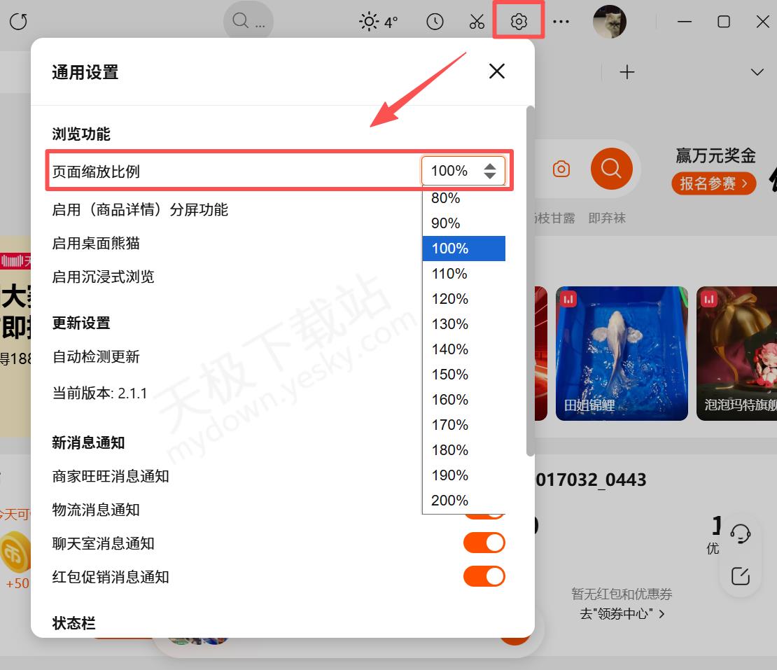 淘宝桌面版界面字体大小怎么调