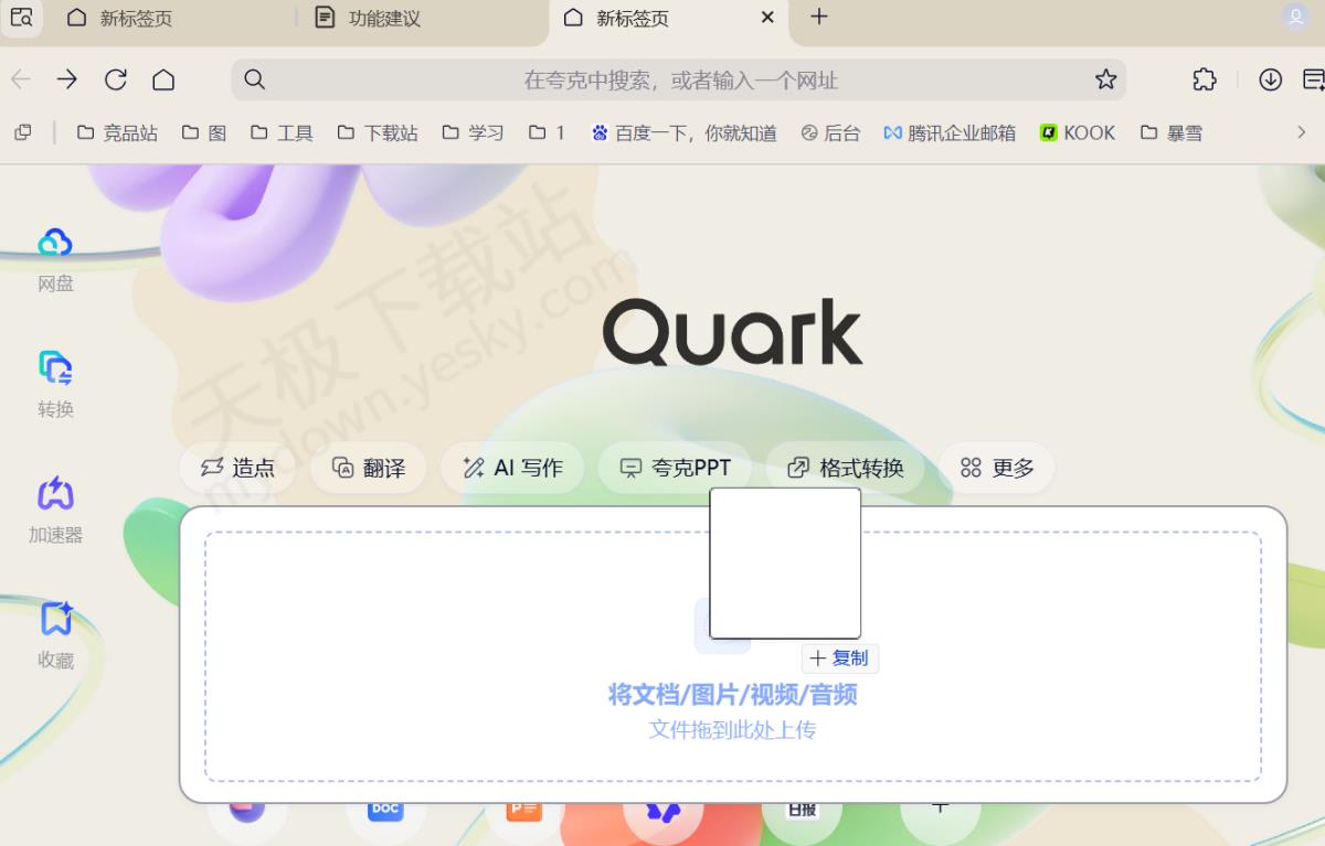 1.夸克浏览器暂无直接的本地视频打开入口,需手动将电脑本地视频文件拖拽至夸克浏览器页面,即可完成打开。