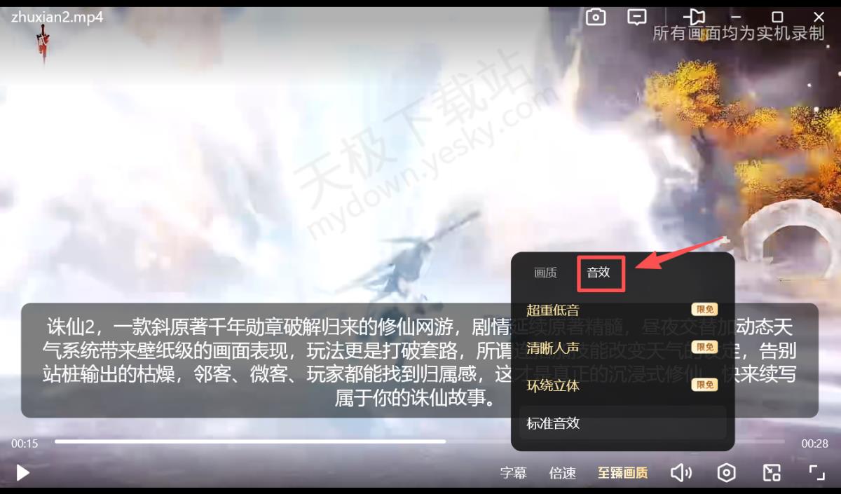 3.专属音效。内置超重低音、清晰人声、环绕立体三种特殊音效,可根据视频类型自由切换。