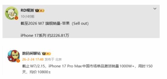 根据最新的行业统计数据显示,截至2026年第7周,iPhone 17系列在中国市场的累计销量已经达到约2226.81万台。