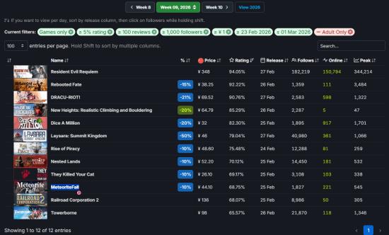 游民星空Steam好评榜,生化危机9领衔,国产影游逆袭重启高位入选