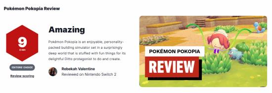 今天,《宝可梦Pokopia》收获IGN 9分好评,M站评分也达到了90分。