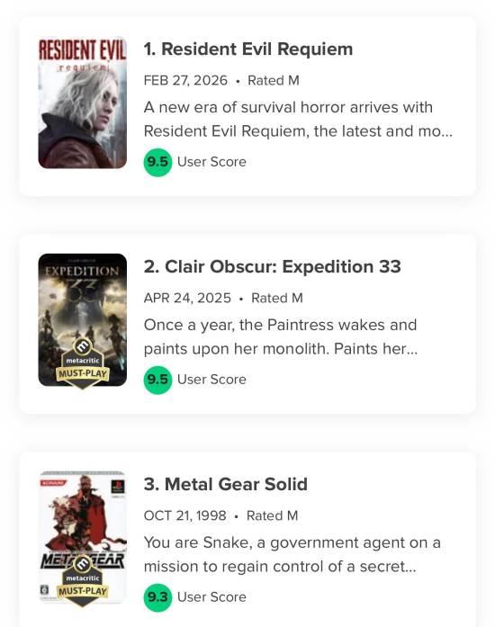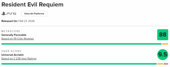 截至发稿前,《生化危机9:安魂曲》现已正式成为M站用户评分历史第一的游戏——高达9.5分。