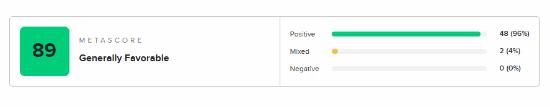目前游戏的M站媒体评分已经解禁,截至发稿前,共有50家媒体对本作进行评测,媒体均分为89分(本文会针对评分情况持续更新)。
