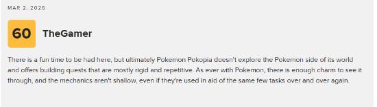 《宝可梦:pokopia》Switch2 M站媒体评分