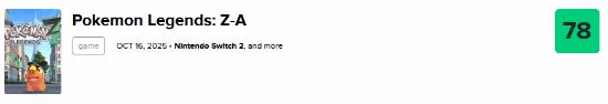 而最近发售的一部《宝可梦》作品《宝可梦传说:Z-A》也仅获得了78分。