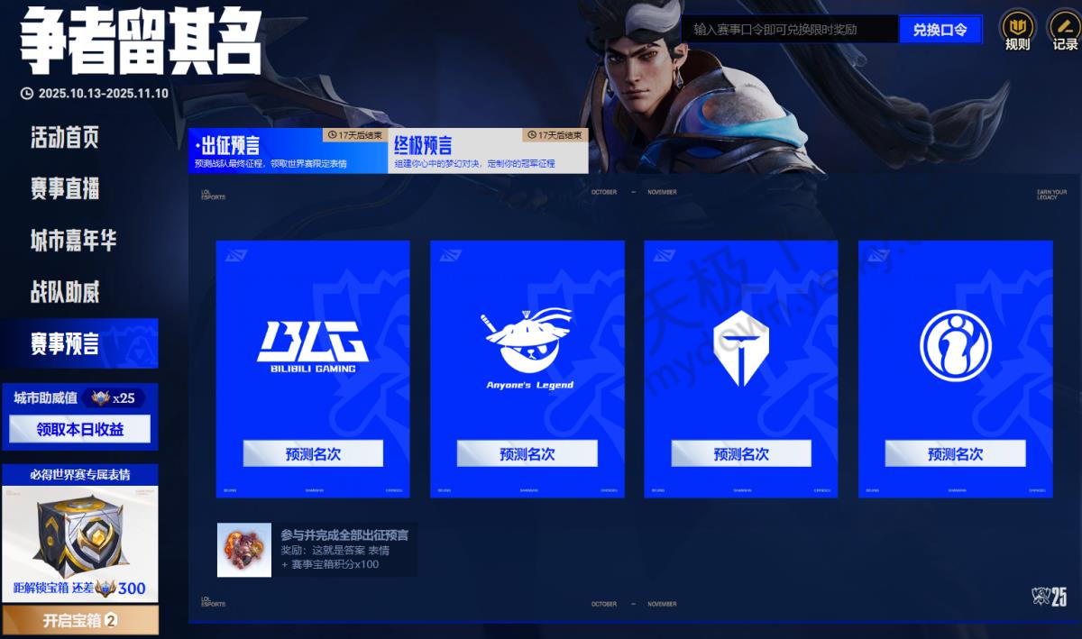 2025英雄联盟全球总决赛观赛活动上线,观看赛事预测战队赢取宝箱奖励
