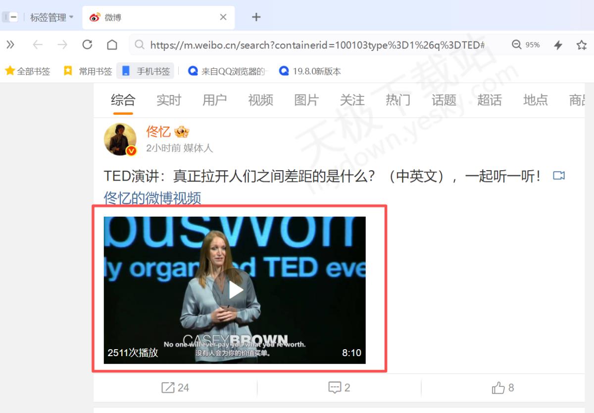 1.下载并打开最新版本的QQ浏览器,打开任意网页的视频。