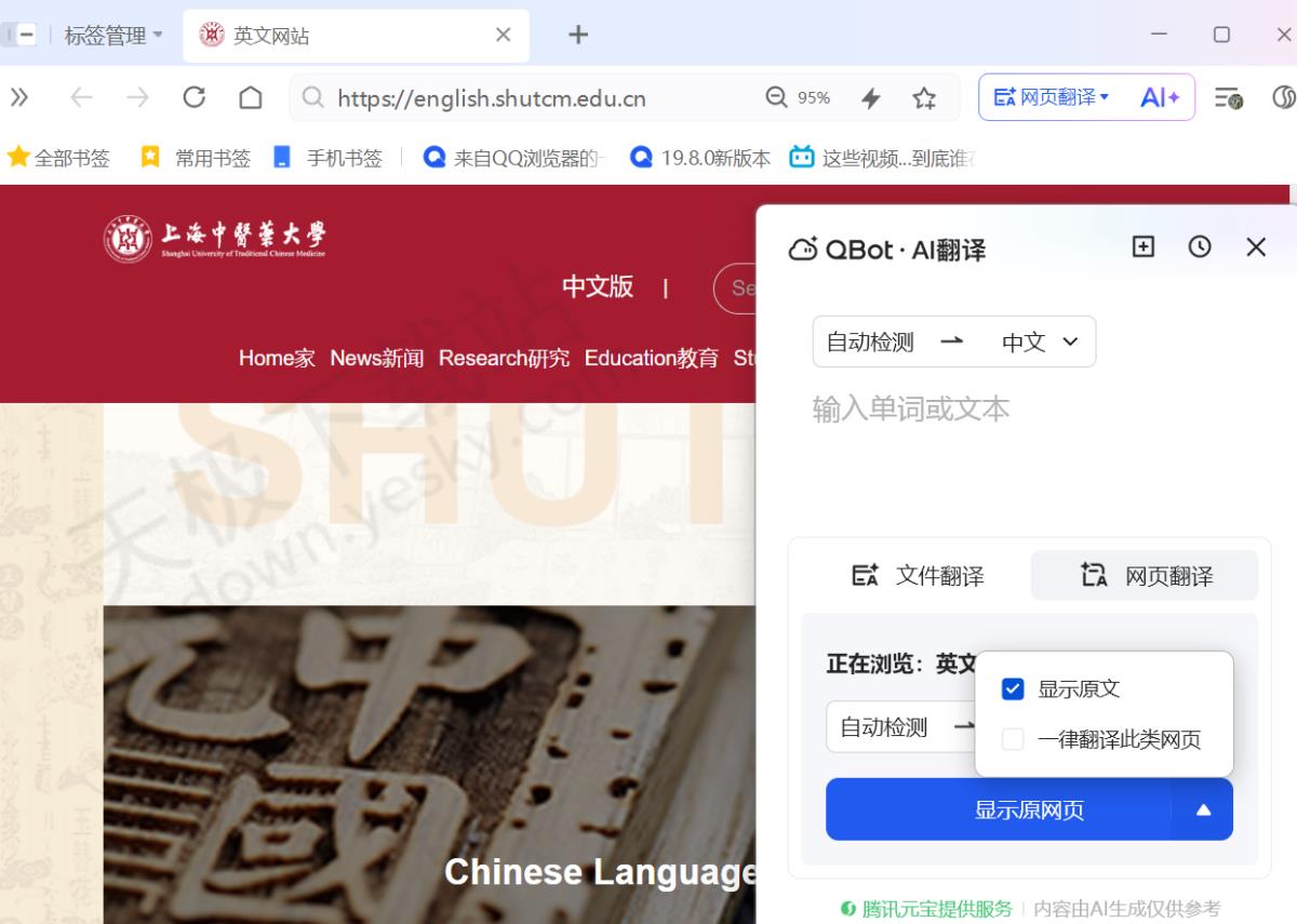 提示:当前教程所对应的PC版QQ浏览器版本为2025最新版V19.8.6。