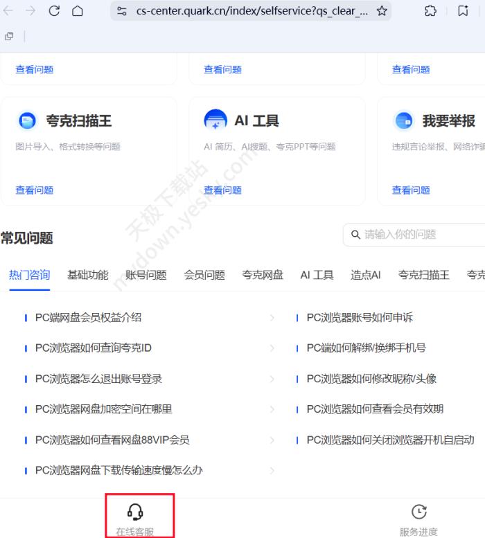 3、如果还有解决不了的问题可以在页面底部点击【在线客服】进行咨询。