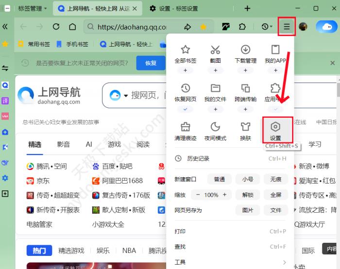 1、打开QQ浏览器进入到首页,点击右上角【☰】→【设置】。