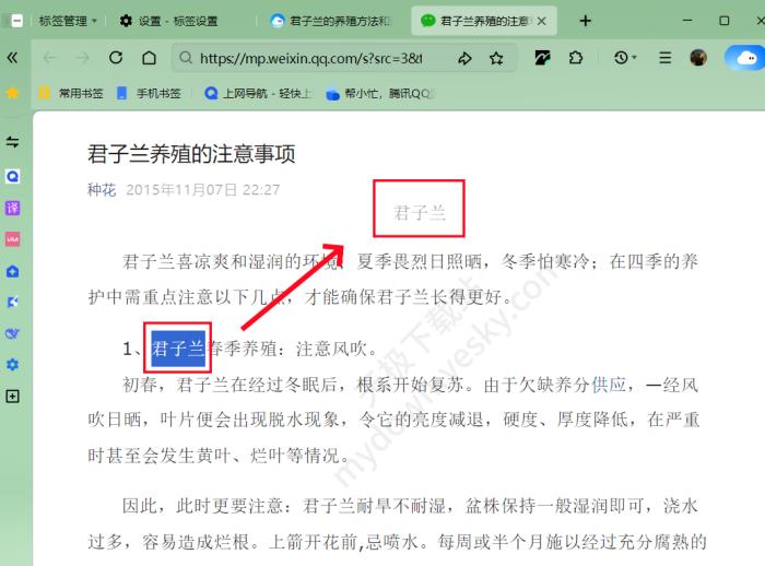 2、拖拽关键词:拖拽某个关键词时,会在新页面使用浏览器默认的搜索引擎搜索该关键词。