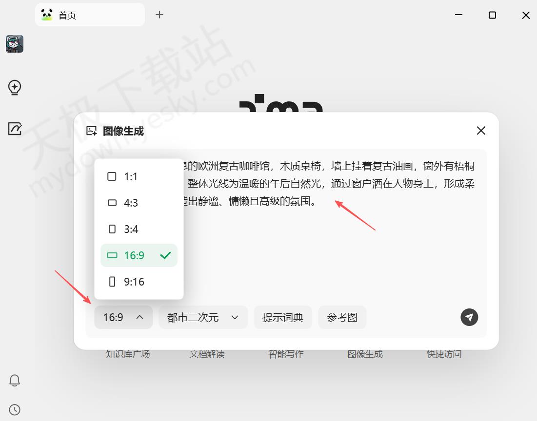 2.在上方输入图像的提示语,然后选择图像的比例和风格。