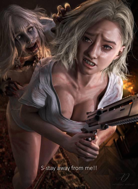 日前,国外3D艺术家@AyJokar分享了一幅充满张力的艺术图:女主角格蕾丝正被一只“酒吧歌手女丧尸”疯狂追赶。丧尸表情狰狞,步步紧逼,而格蕾丝大腿上甚至被拍下一个鲜红的手印,仿佛下一秒就会被抓住。尽管手中握着强力武器,她依然满脸惊恐地逃窜——让人不禁联想,她是不是又像游戏初期那样,陷入了弹药耗尽的绝境。