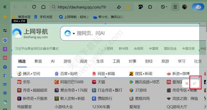 2、选中想要截图的区域,点击右下角【✔】滑动鼠标滚轮开始截图,屏幕右侧会出现长截图的预览,最后点击【✔】即可完成滚动截图。