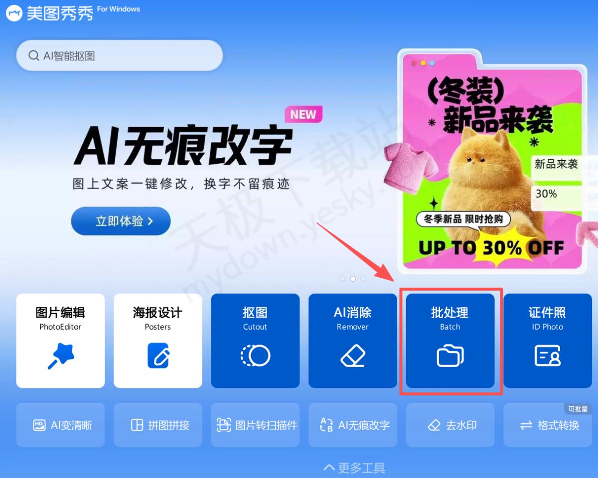 1.打开最新版本的美图秀秀,点击页面中的【批处理】。