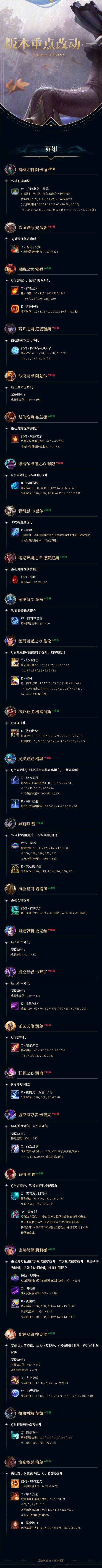 官方还将对英雄、装备、召唤师技能进行全方位的平衡性调整,同时优化海克斯大乱斗、极地大乱斗及斗魂竞技场等玩法模式的平衡设定,还会修复德玛西亚崛起相关的部分游戏 bug,对整体系统与游戏品质完成优化升级。玩家可通过公告附带的长图查看完整的更新细节,了解版本核心要点、重点调整内容与各类游戏优化信息。