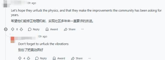 尽管新作发售在即,但Reddit社区的核心玩家群体对此反应谨慎。讨论焦点主要集中在游戏的物理引擎表现上。