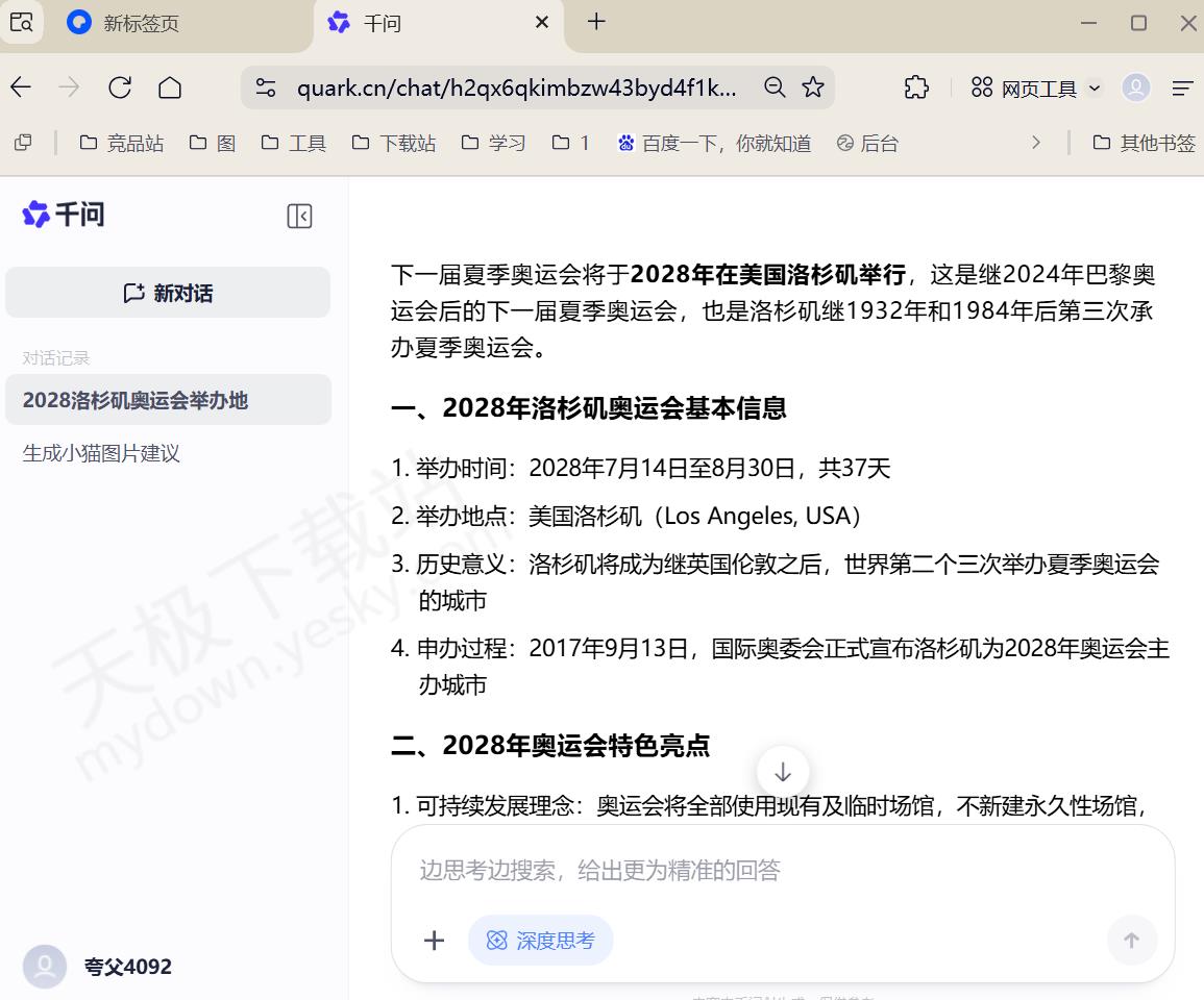 调查发现,夸克浏览器里有个千问助手,它就是个智能AI问答工具。你问它生活常识、学习问题、工作上的疑惑,它都能给你个快速的解决方案。不仅如此,千问助手还能帮你写文案、写报告、写短文,甚至能翻译多种语言,真是个多面手。在你浏览网页的时候,它还能总结网页内容,帮你提炼重点信息,让你获取信息更高效。
