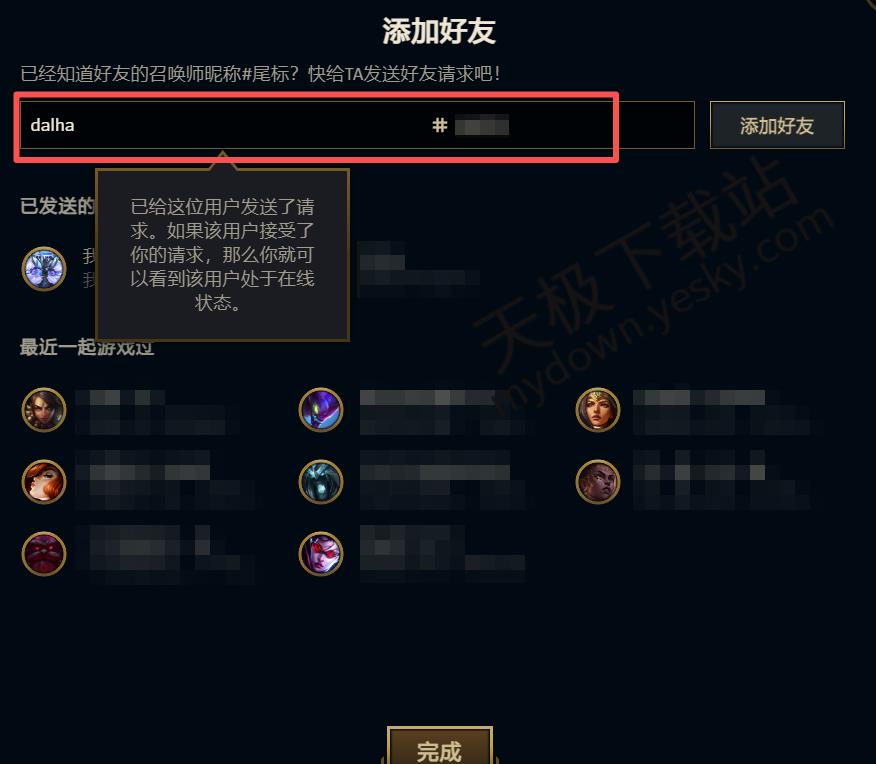 ●在上方输入召唤师的名称和编号,点击【添加好友】即可。