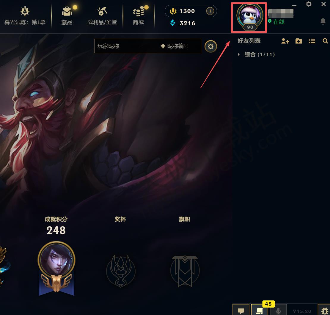 ●打开英雄联盟客户端,点击右上角【头像】。