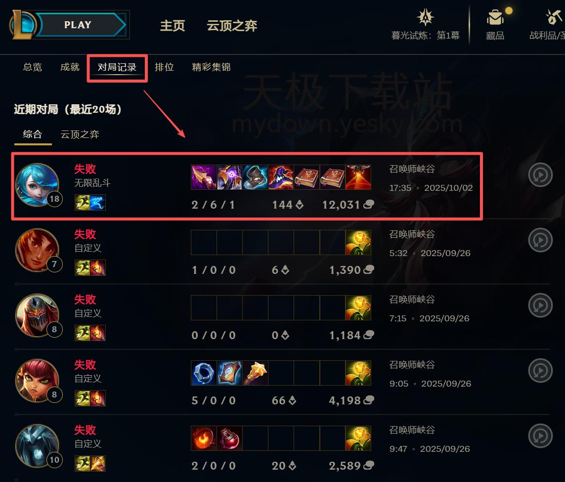 ●在生涯页面中选择【对局记录】。