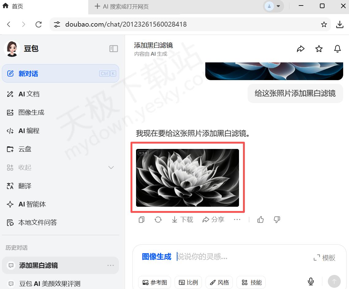 2.稍等片刻,豆包会生成已经替换过滤镜的照片。