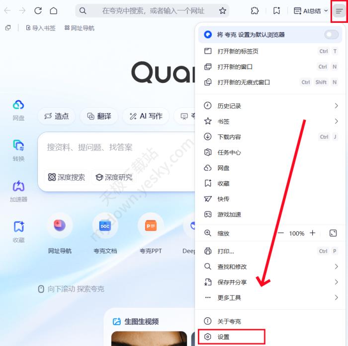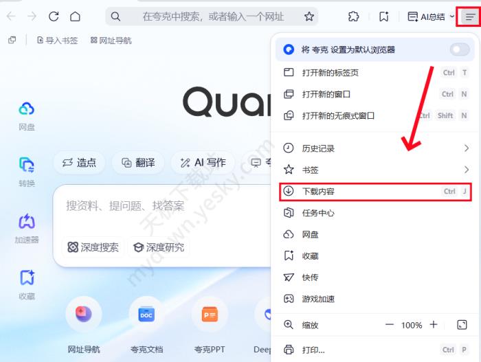 提示:当前教程所对应的夸克浏览器电脑端版本为2025最新版V4.5.5.535。