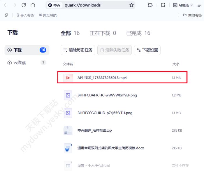 2、这里就会看到从夸克浏览器下载的全部内容,点击查看即可。