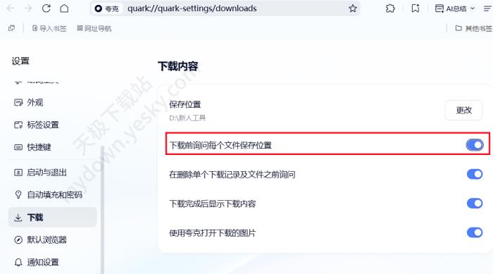 答:经实际测试验证,夸克浏览器是不支持在下载过程中更改保存位置的,用户可以开启【下载前询问每个文件保存位置】,在下载前弹出的下载提示框中更改保存位置。若下载已经开始,则需要取消下载任务,重新点击下载链接更改保存位置。