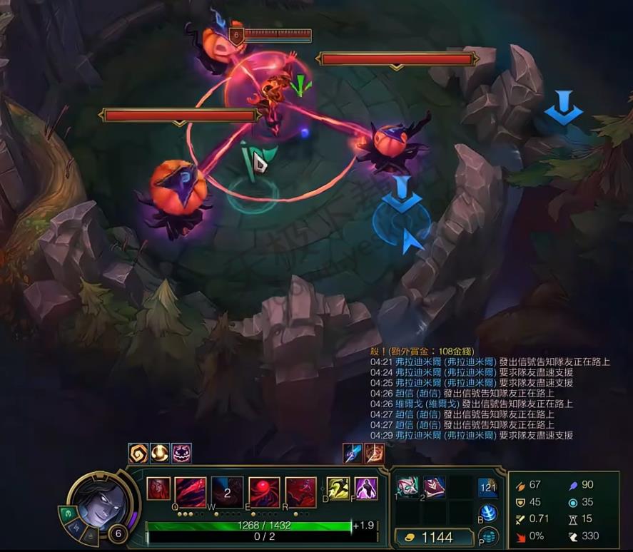 5.格温:W技能规避伤害,穿透 百分比伤害搭配被动回血,克制高血量人机。