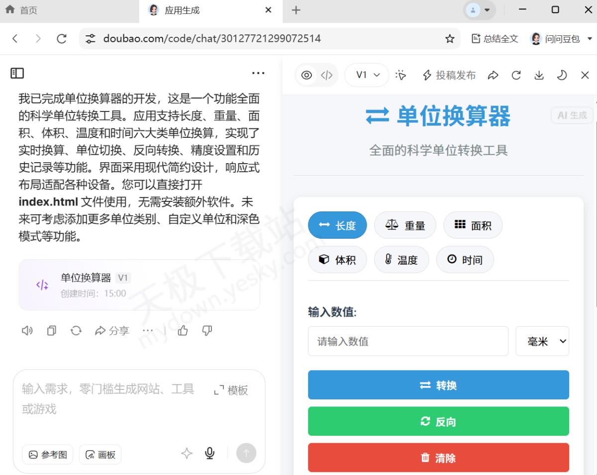 4.如图就是豆包根据需求生成的单位换算器应用。