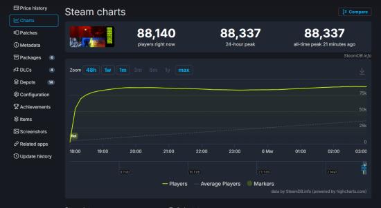 在发售首日,该作的同时在线人数峰值达到了88337人。与此同时,用户口碑也呈现积极态势。