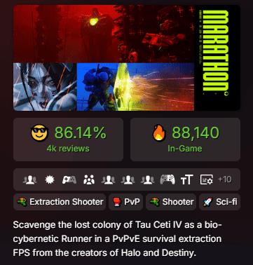 Bungie新作失落星船:马拉松Steam首发大热,在线峰值超8.8万获特别好评