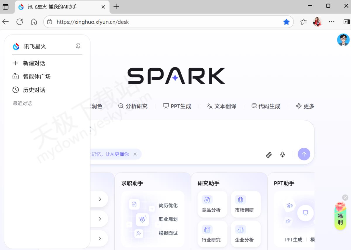 分享个讯飞星火网页版的在线使用入口,地址是:https://xinghuo.xfyun.cn/desk。