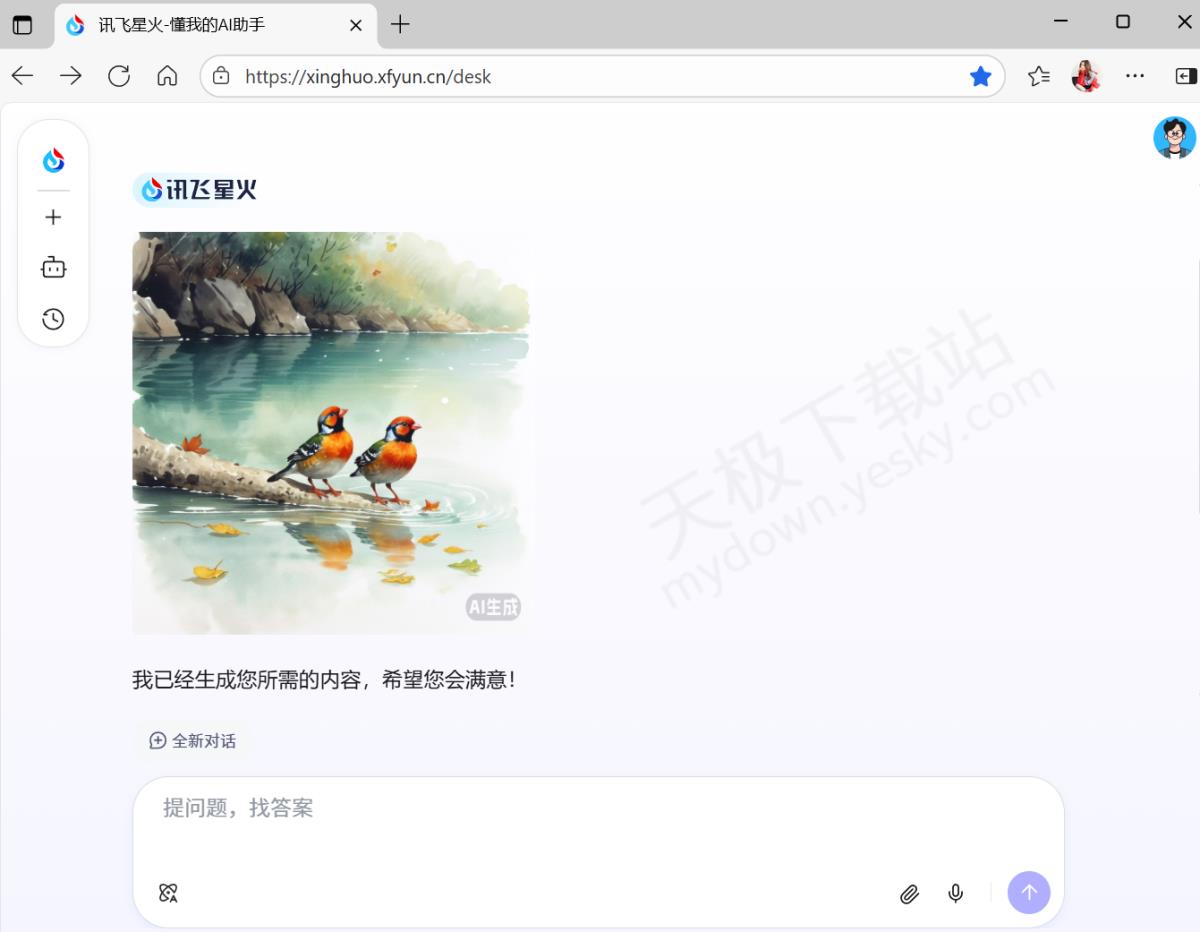 3.如图就是讯飞星火生成的AI图像,该图像目前不支持下载保存。