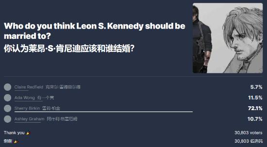 这引发了玩家社区无限的猜想,不久之后,IGN也发起了一项投票,调查在玩家心目中,认为哪位女角色应该和里昂结婚。