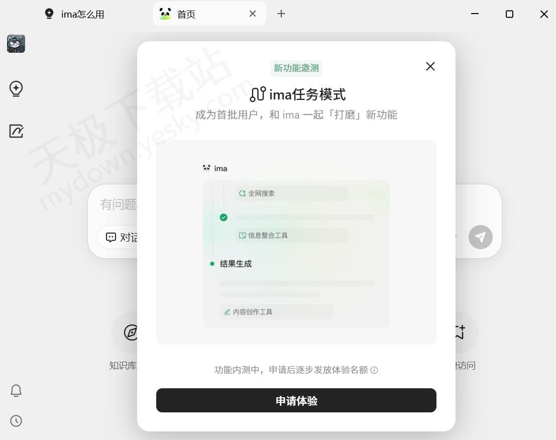 1.打开腾讯ima,在首页申请任务模式内测资格。