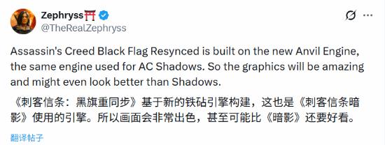 该博主爆料称,《刺客信条:黑旗 Resynced》是基于育碧最新的Anvil引擎构建的,而这正是在《刺客信条:影》(AC Shadows)中使用的同款引擎。这意味着本作将具备极高的画面水准。该博主甚至大胆预言:“它的画质会非常惊人,甚至可能看起来比《影》还要出色。”
