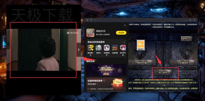4.此时会出现视频播放页面和游戏页面两个画面,点击【进入游戏】。