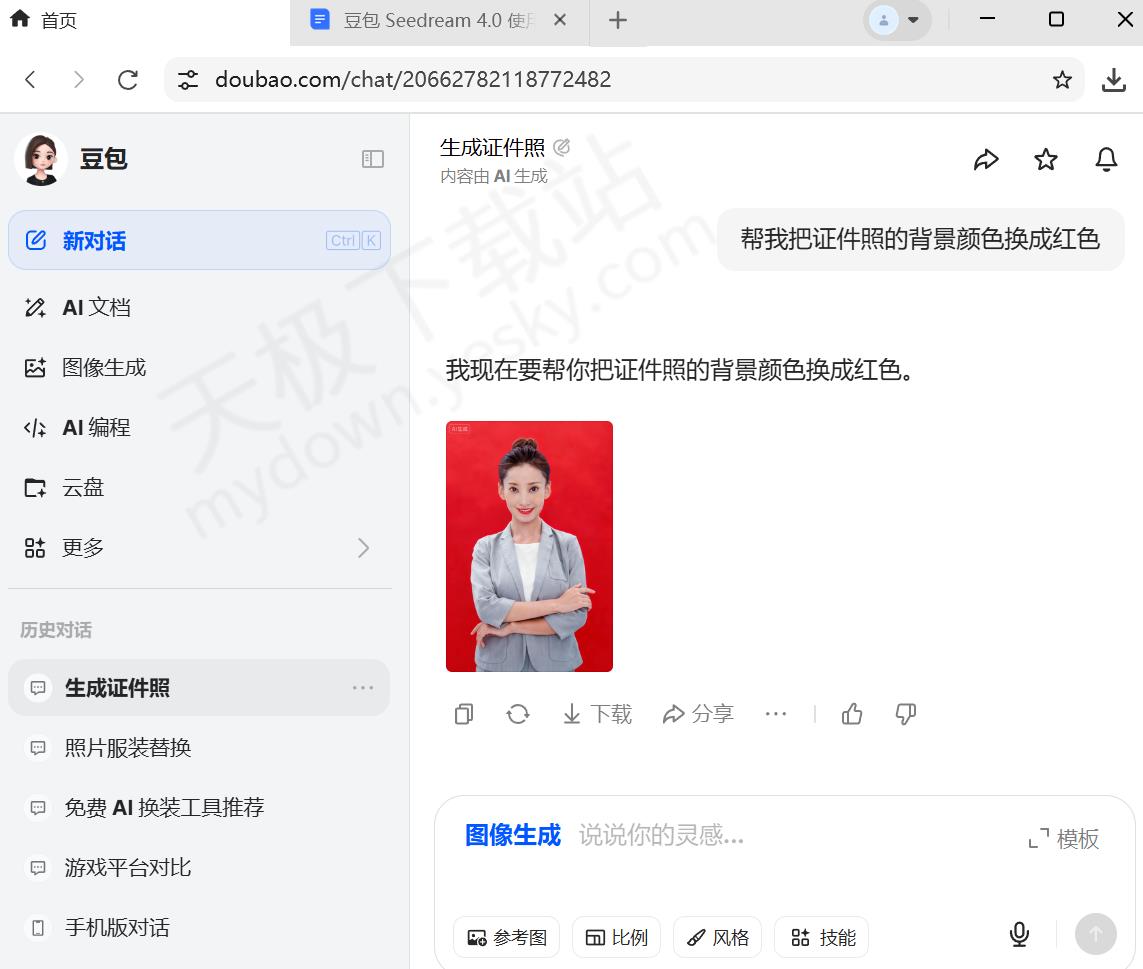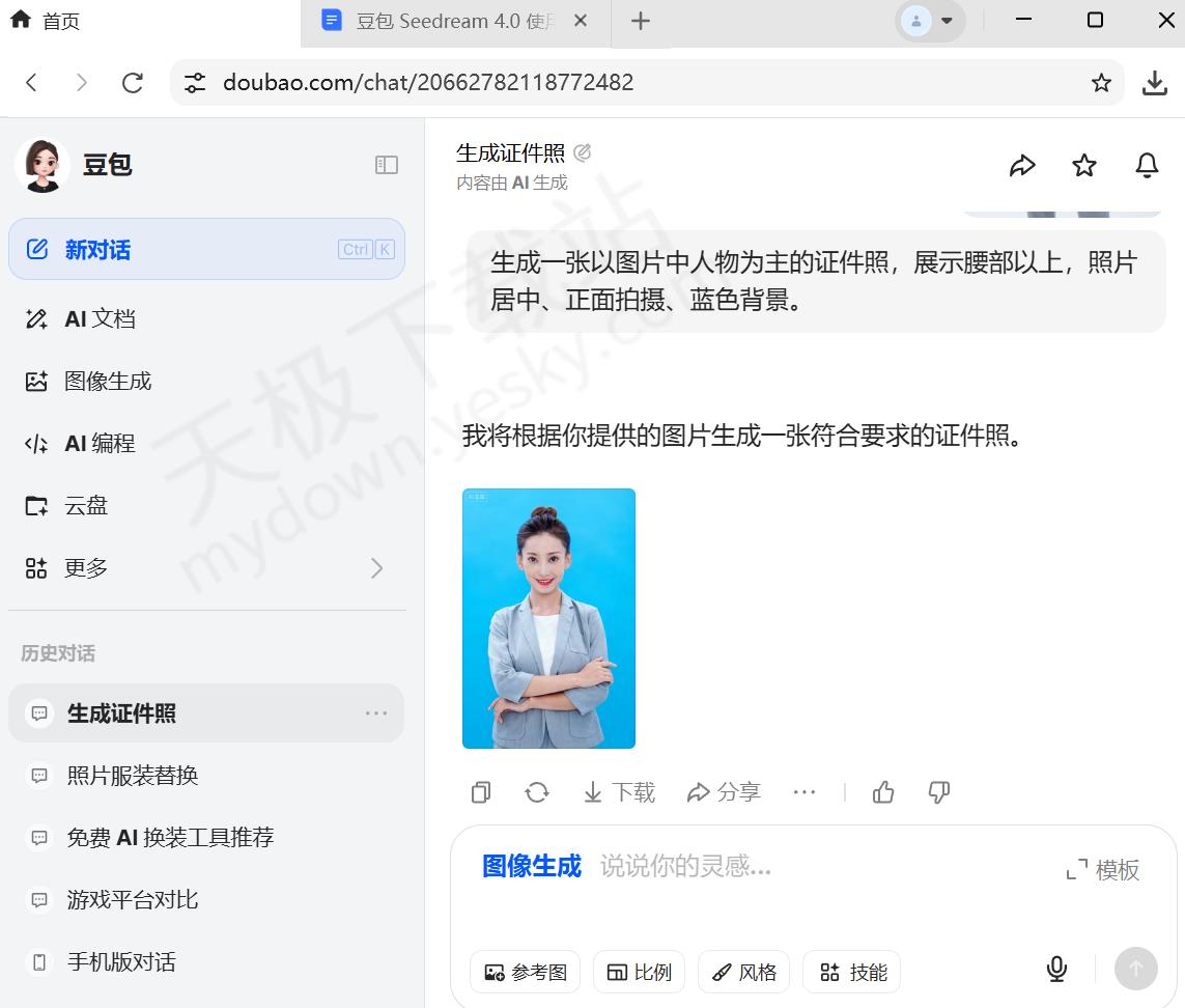 2.发送完毕后,稍等片刻豆包就会生成证件照。